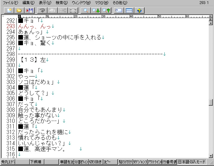 私の場合はテキストエディタ(秀丸)を使用し、ここでセリフとページ割も決めてしまいます。