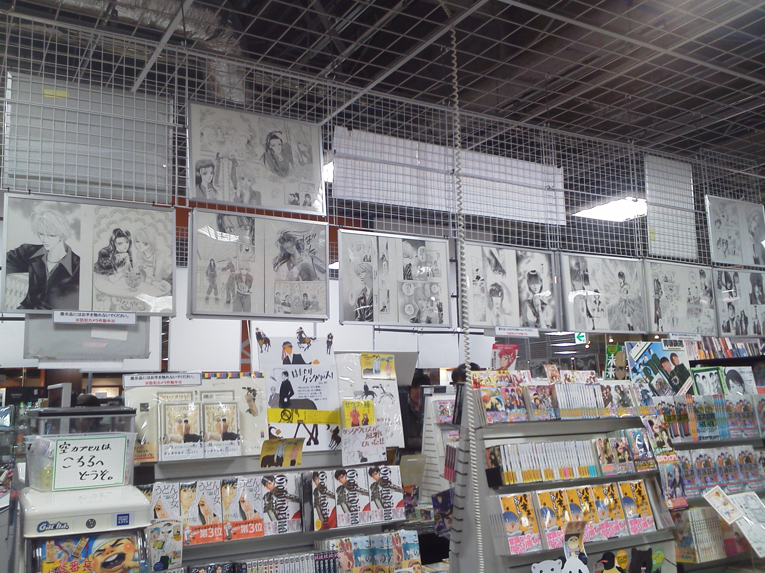 パーティションなどで区切られた催事スペースみたいな場所で、壁にずらーっと、それこそ花ゆめ3号に掲載された32枚が掲げられている…ようなものを想像していたので、ショボく感じてしまいましたが、イラストそのものは迫力がありました。
