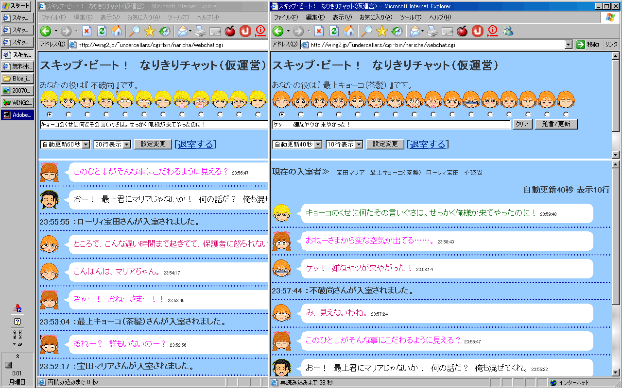 ただ会話するだけじゃ普通すぎるので、アイコンを使った『なりきりチャット』(⇒参考リンクhttp://www.10ch.tv/narikiri/)と呼ばれる類のチャットにしてみました。