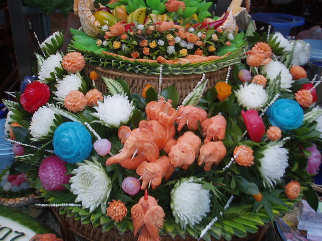今年はフルーツカービングを見ませんでした。去年はスイカやカボチャの大作を見かけたのに。