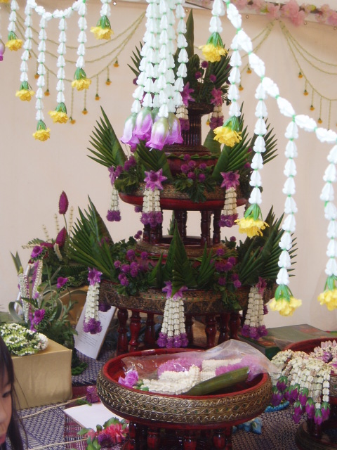 大使館の展示ブースで実技していた花の細工もの。