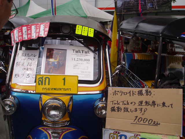 値段は123万円。撮影した13日15時頃には5台が売れ、他に3台が商談中となっていました。こういう車が日本の公道を走っていたらすごく目立ちそうです。誰が買うんだろう? タイ料理店の経営者とか? それとも車マニア?