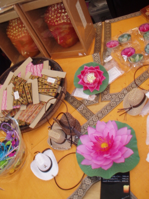 雑貨屋さんの中で蓮の花のコサージュが可愛かったので撮影。これは非売品でした。